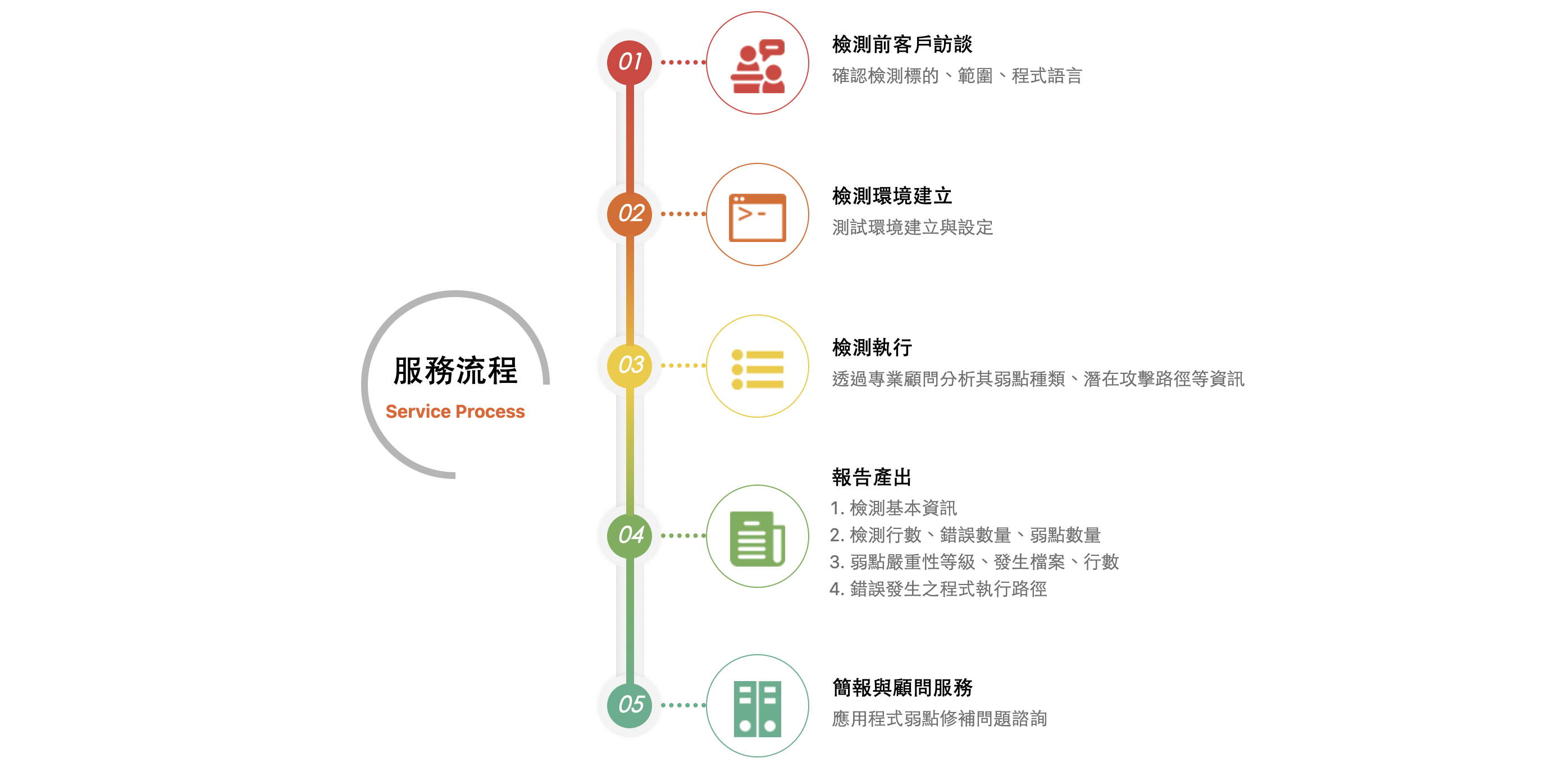 專業漏洞識別流程 源碼檢測透過先進分析工具結合資安專家判斷,全面檢視應用程式組件,不僅能發現 SQL Injection、XSS 等常見弱點,更能識別滲透測試難以察覺的邏輯性缺陷